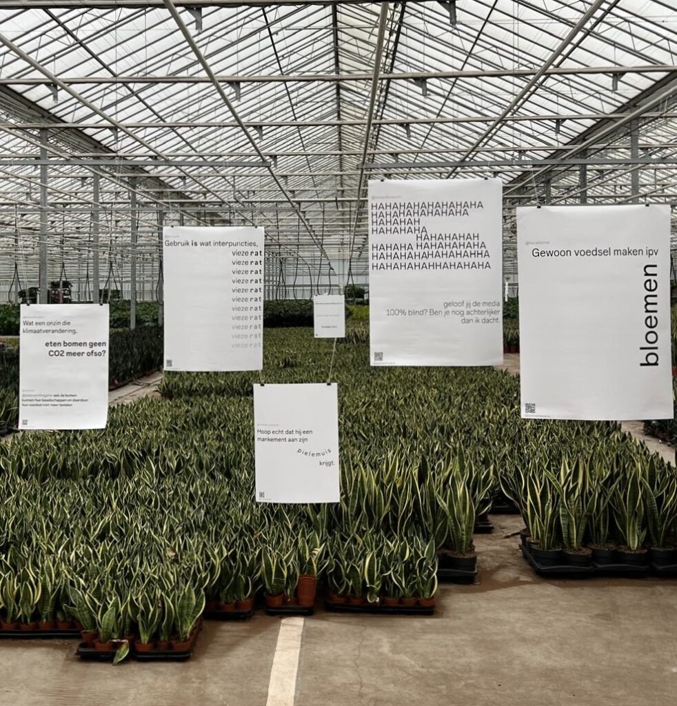 Om het werk bovendien interactiever te maken, voorzag ik elke poster van een QR-code die leidt naar de oorspronkelijke Instagrampost. Zo wordt de toeschouwer teruggebracht naar de bron: niet alleen de tekst, maar ook de context.